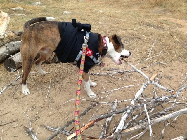 About 30 minutes later we pulled into what I'll describe as a clearing in a vast Arctic tundra. My mom and her special friend began to unload the car, they opened the door and a sudden, shocking blast of frigid air hit me square in the face. I recoiled in horror, this was not what I had signed up for, this was not why I agreed to move to Texas. My mom forced me out of the car and I stood there shaking uncontrollably. It must have been 50 degrees outside, I don't know how people live like that. I tried to follow my mom into the arctic clearing but I could barely move. She took out an underarmour shirt and fashioned what I can only imagine was a straight jacket for me, tying the arms around my doggy waist to hold it in place. While some canines enjoy dog outerwear, I truly loathe any form of clothing. I can be on top of the world, jumping out of my skin with happiness and the moment you put an article of clothing on me my entire body will seize up and I simply am unable to move. So you see, things were just getting worse. I tried to walk, despite the restrictions of a straight jacket and as time wore on (hours) I finally was able to adjust my gait to to look somewhat normal and I no longer had to hear my mom's special friend yelling "he's taking geisha sized steps."