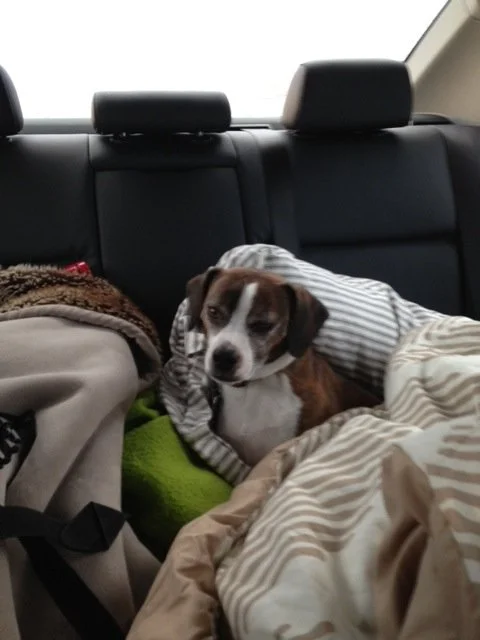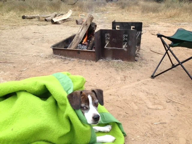 Author’s Note: Diggy truly was miserable on this camping trip. We really did eventually just lock him in the car with heat blasting where he promptly fell asleep. And he really did walk around taking tiny, dramatic, mini steps in protest of wearing the jacket I fashioned for him (which I only did because he was being so pathetic!).
